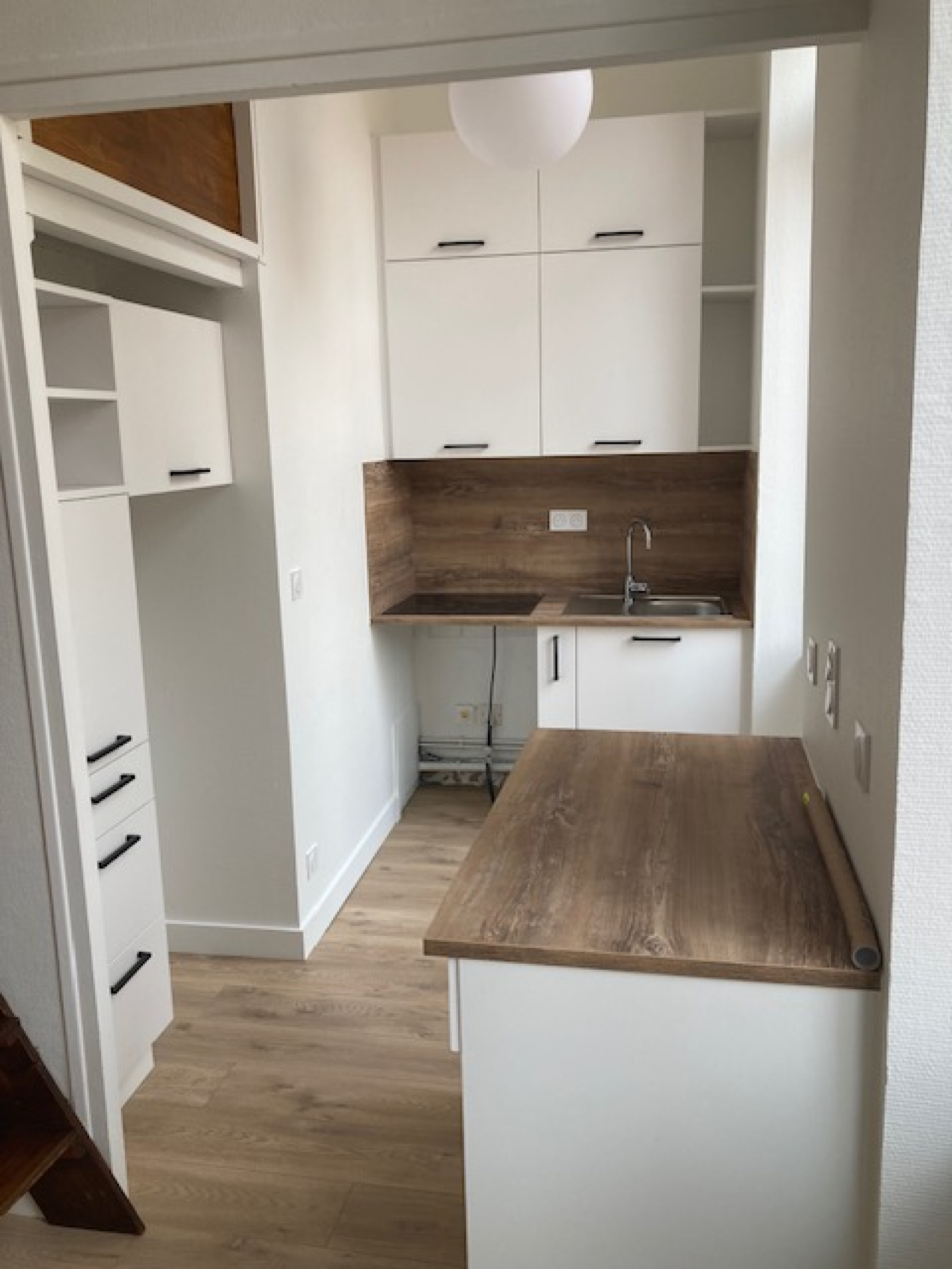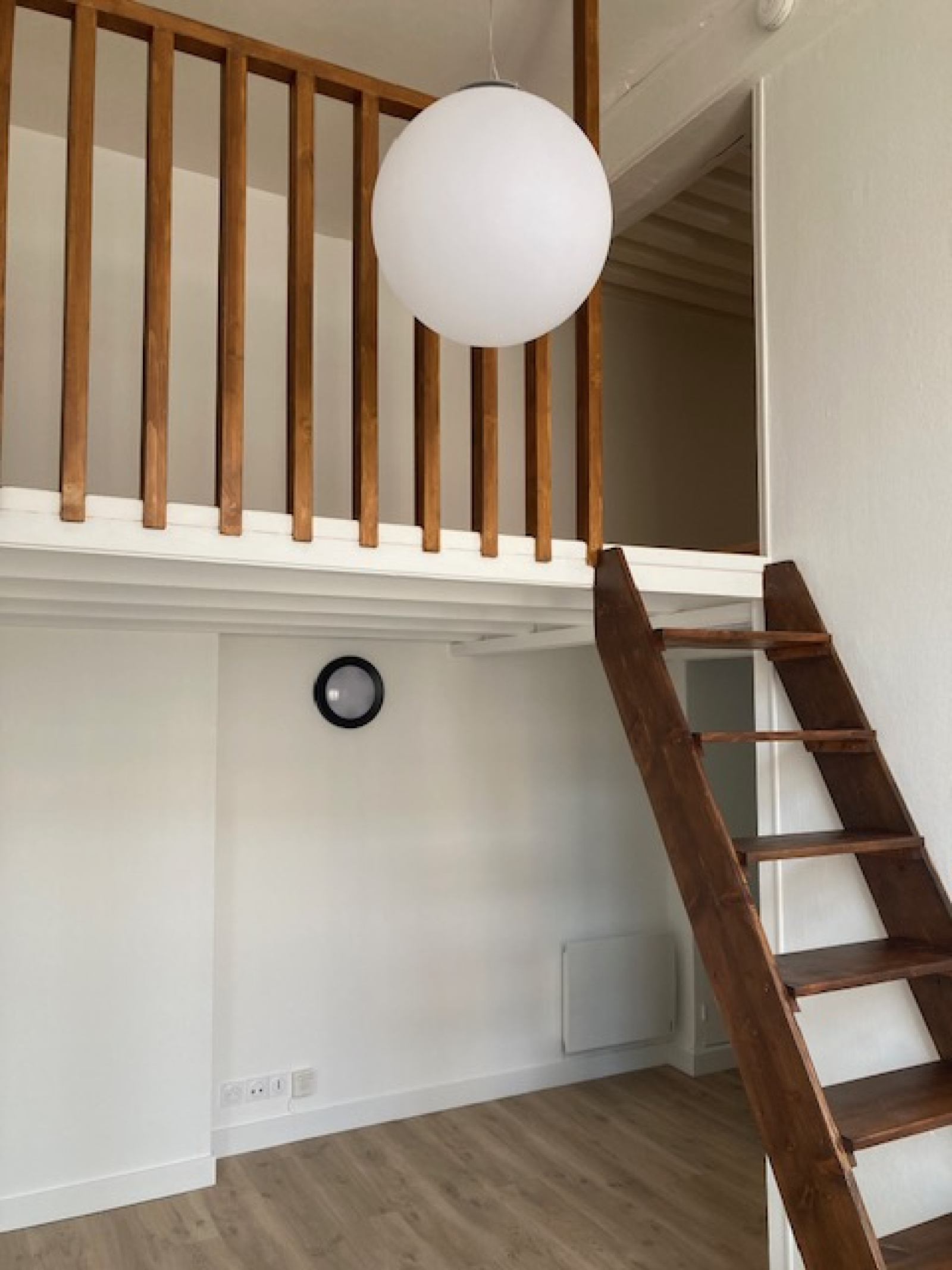 Superbe T2 refait à neuf de 34 M2 hab et 53 M2 surface totale en étage élevé.Il comprend un séjour cuisine us neuve et semi-équipée avec tous les meubles , un wc et salle de bains , une chambre spacieuse . Deux mezzanines supplémentaires hauteur 1,70 m.Prestations : parquet ,plafond poutres à la française, chauffage électrique radiateur atlantic ,double vitrage.Libre le 1 er Juillet 2023.Contact bruno PERBET 06 13 63 26 43 .