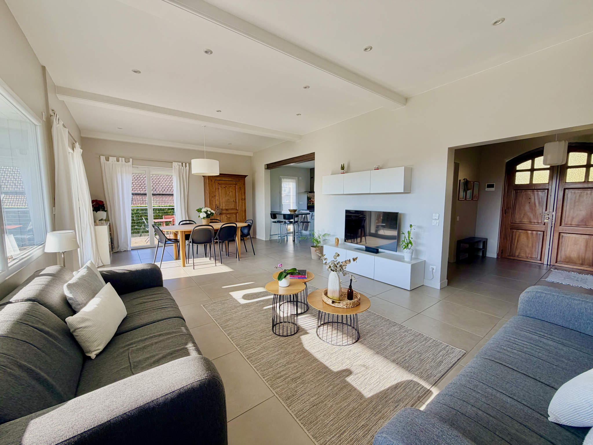 Idéalement située en centre village, au calme absolu, cette maison de plain-pied entièrement rénovée développe environ 170 m² habitables (383 m² au sol) sur une parcelle de 1 755 m² avec vue dégagée.