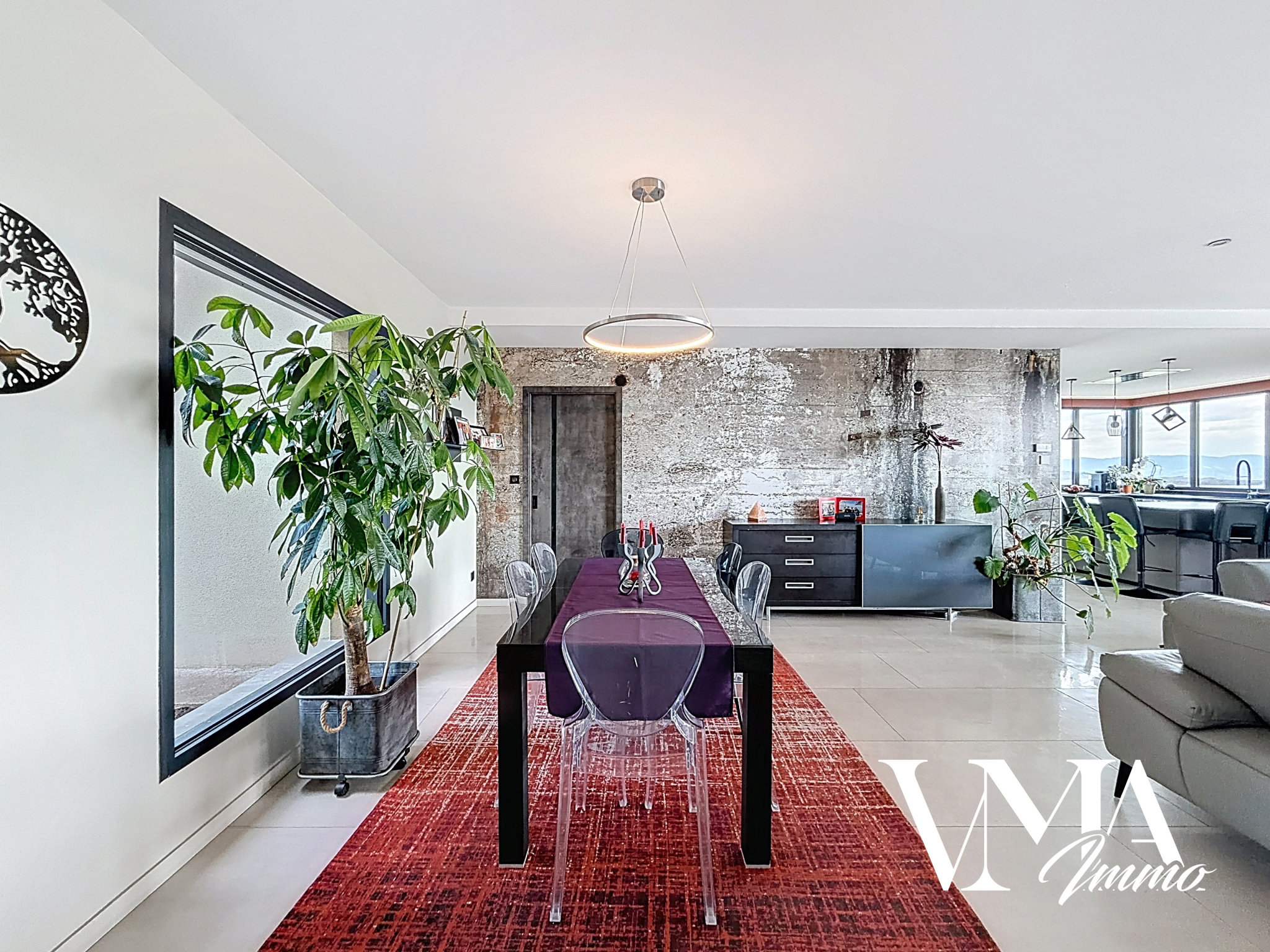 Dès l’entrée, vous accédez à une magnifique pièce de vie d’environ 65 m², baignée de lumière, avec une cuisine ouverte haut de gamme. De larges baies vitrées offrent un accès direct à la terrasse et mettent en valeur une vue panoramique exceptionnelle.