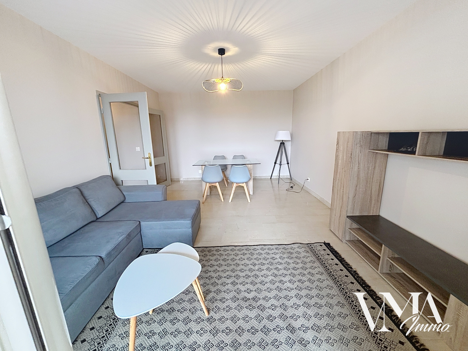 T2 meublé d 'une surface de 49 M2 avec un gros plus : une terrasse de 19 M2 avec ascenseur avec vue sur parc arboré et piscine.Un hall d 'entrée dessert un beau séjour avec baie vitrée ,une cuisine séparée équipée et meublée et une jolie chambre avec sa salle de bains ; ses trois pièces donnent sur une grande terrasse de 19 M2( idéal pour dîner nombreux et se relaxer ).Une cave et en supplément un garage box fermé pour 150 €/mois.