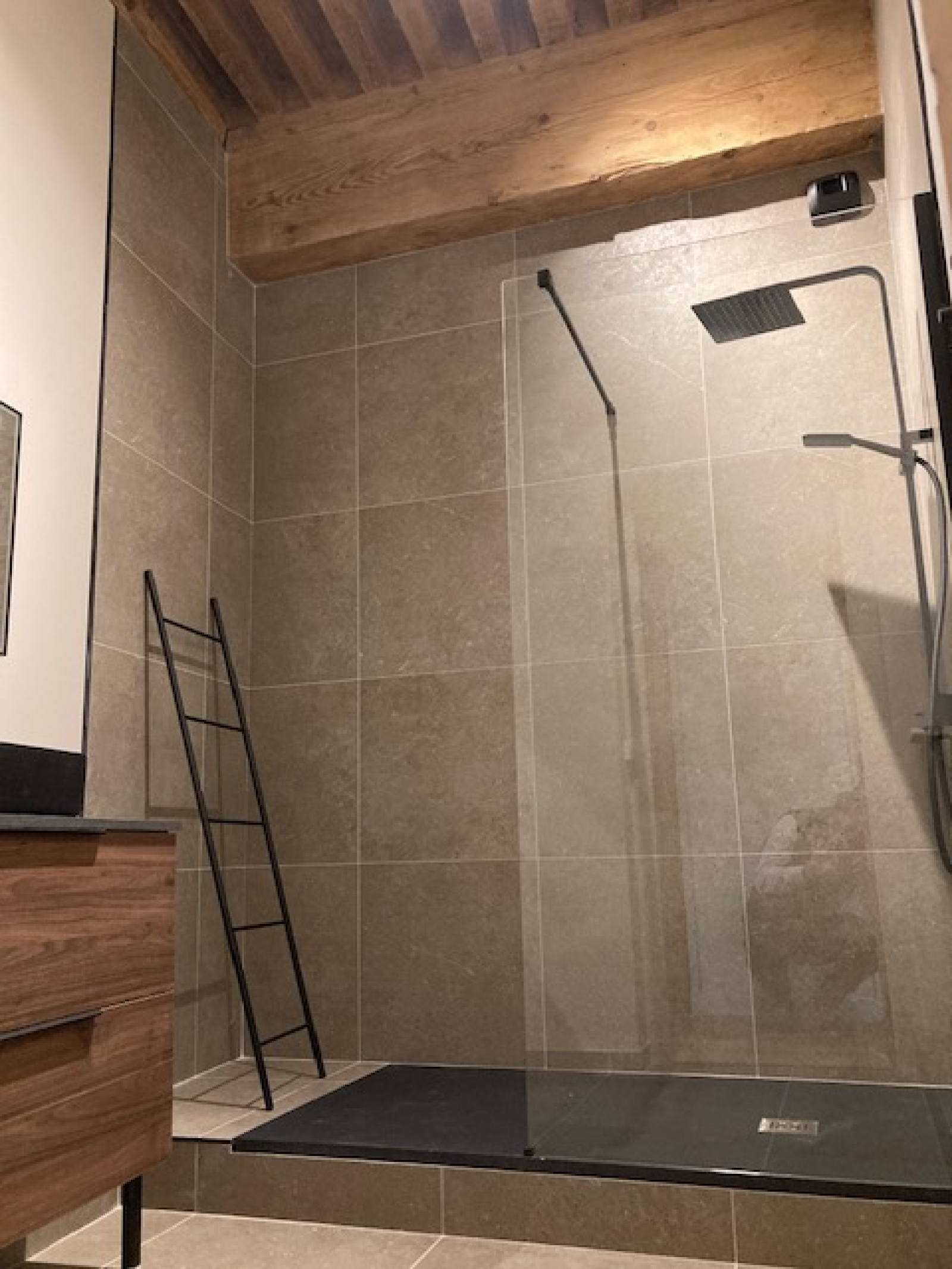 Il offre également une grande chambre avec espace dressing, une somptueuse salle d’eau à l’italienne, un WC indépendant et un hall d’entrée avec rangements intégrés.