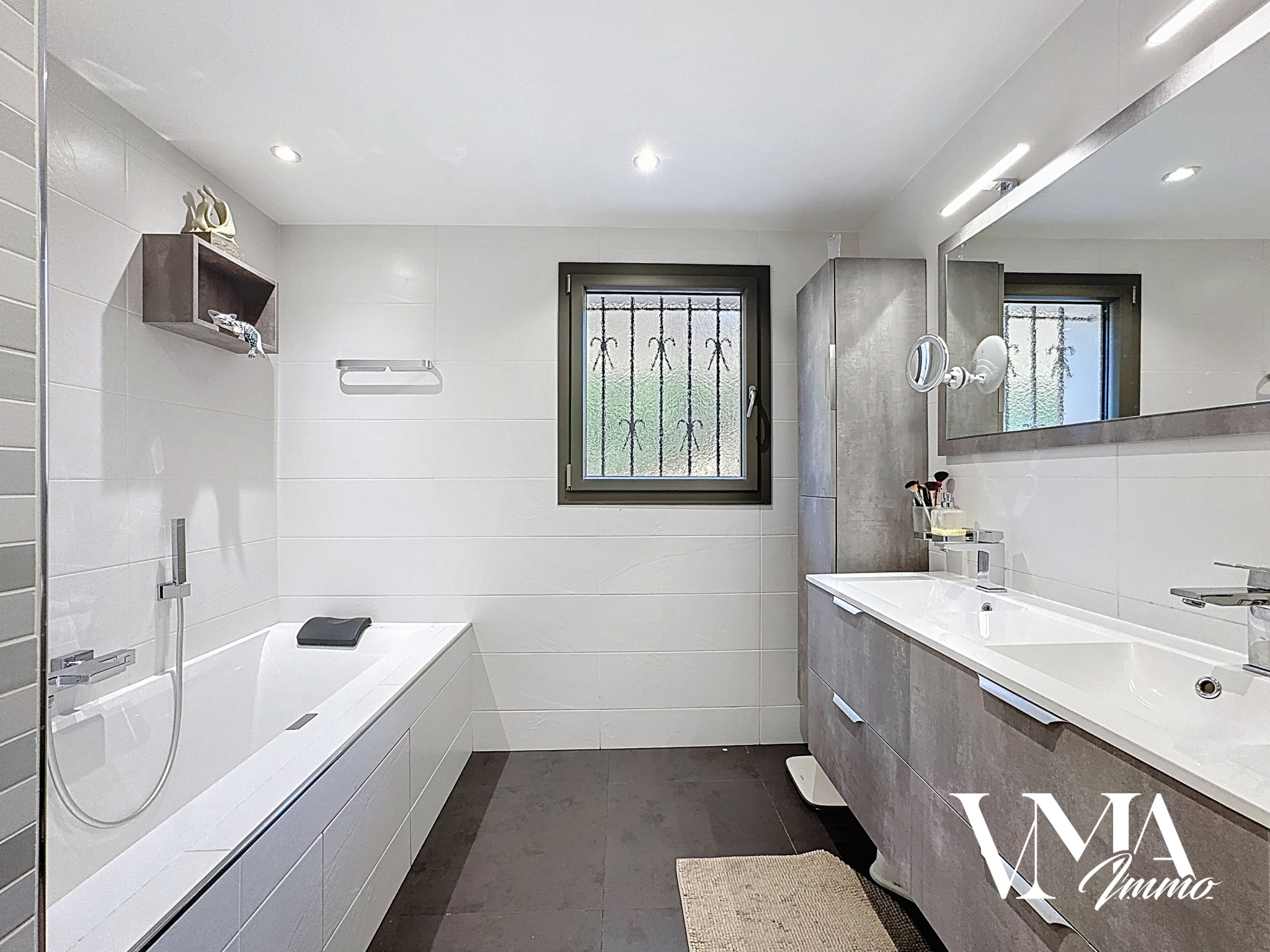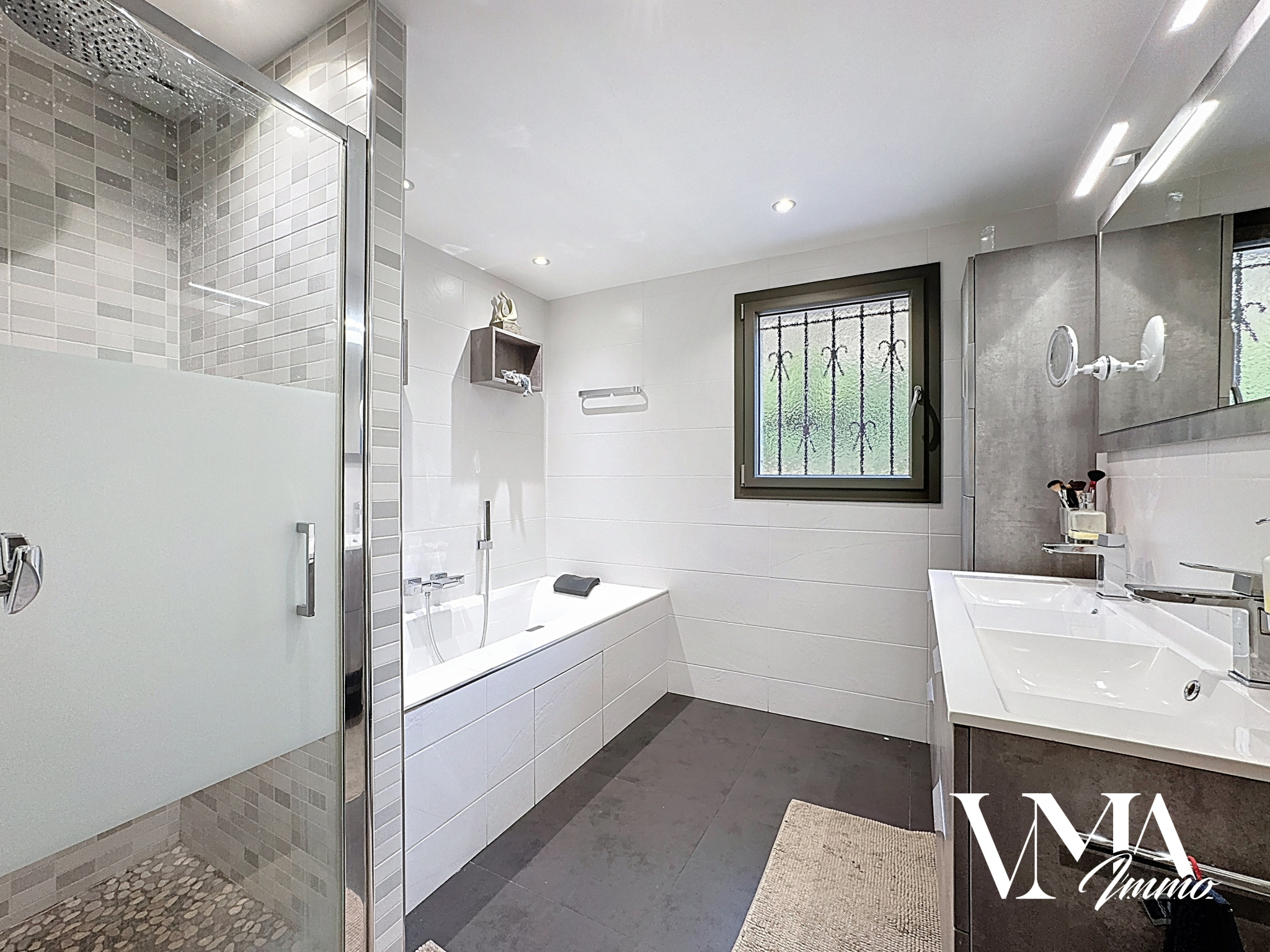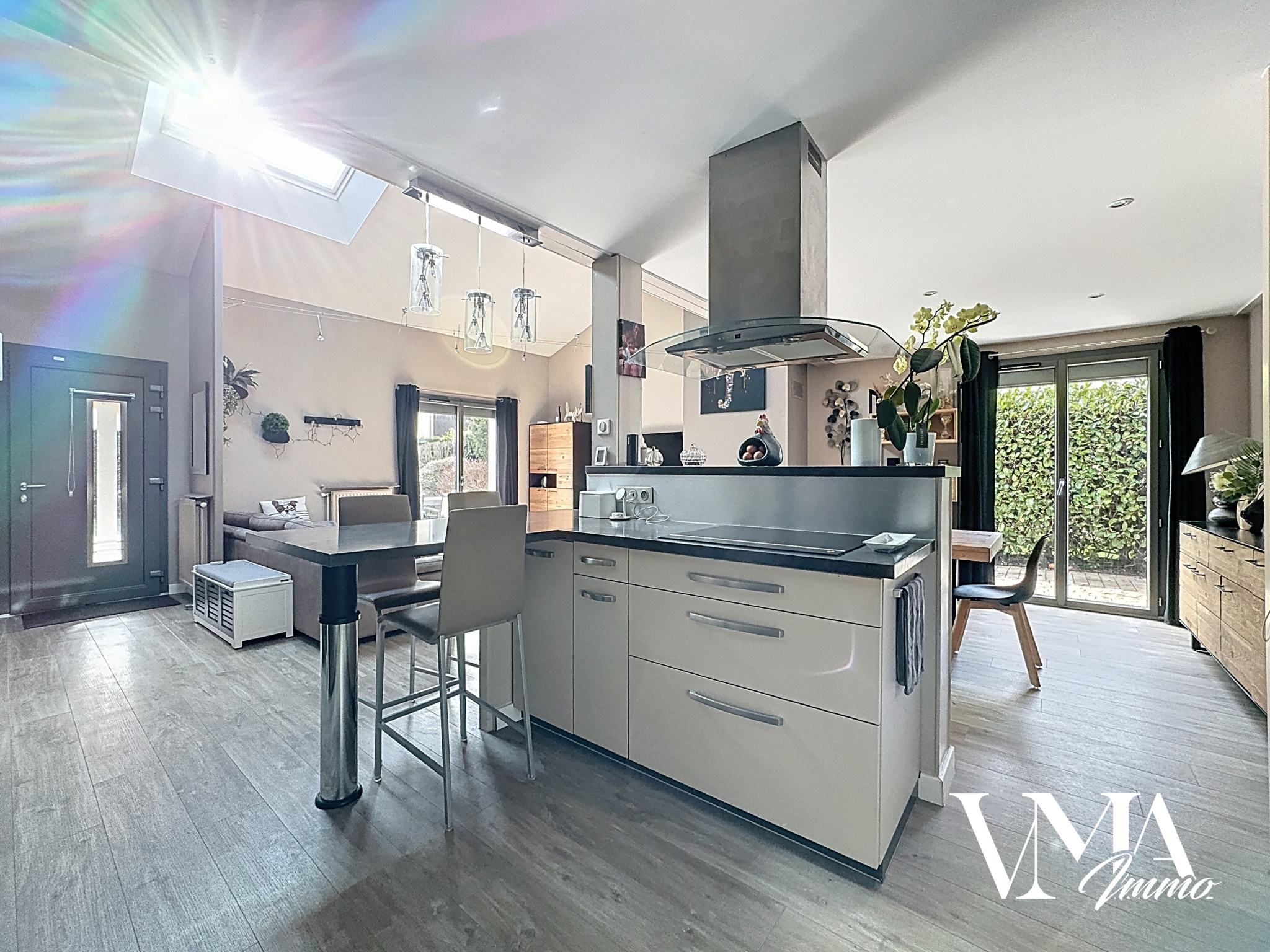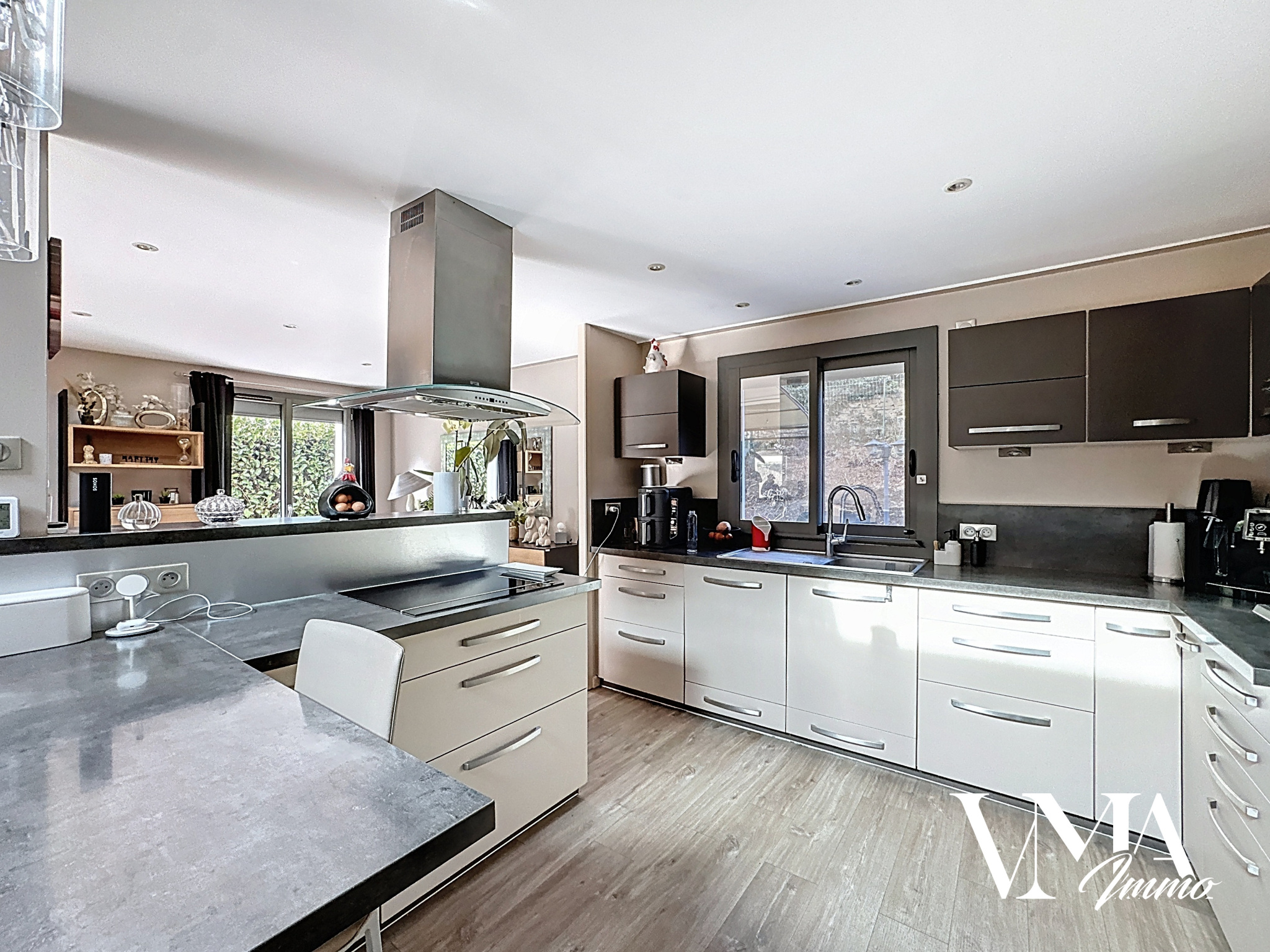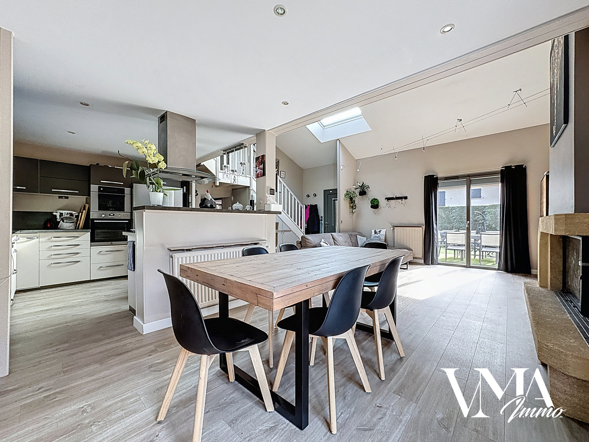 Maison entièrement rénovée d'environ 130m2 sur terrain de 550m2. Grand séjour d'environ 50m2 donnant sur terrasse et jardin. Cuisine US meublée et équipée. 4 chambres + bureau. Salle de bain avec douche + baignoire. Grand garage. Maison en très bon état, au calme et lumineuse. Double vitrage récent, volets roulant électrique et domotique. Chauffage au gaz + climatisation et cheminée à bois avec insert.